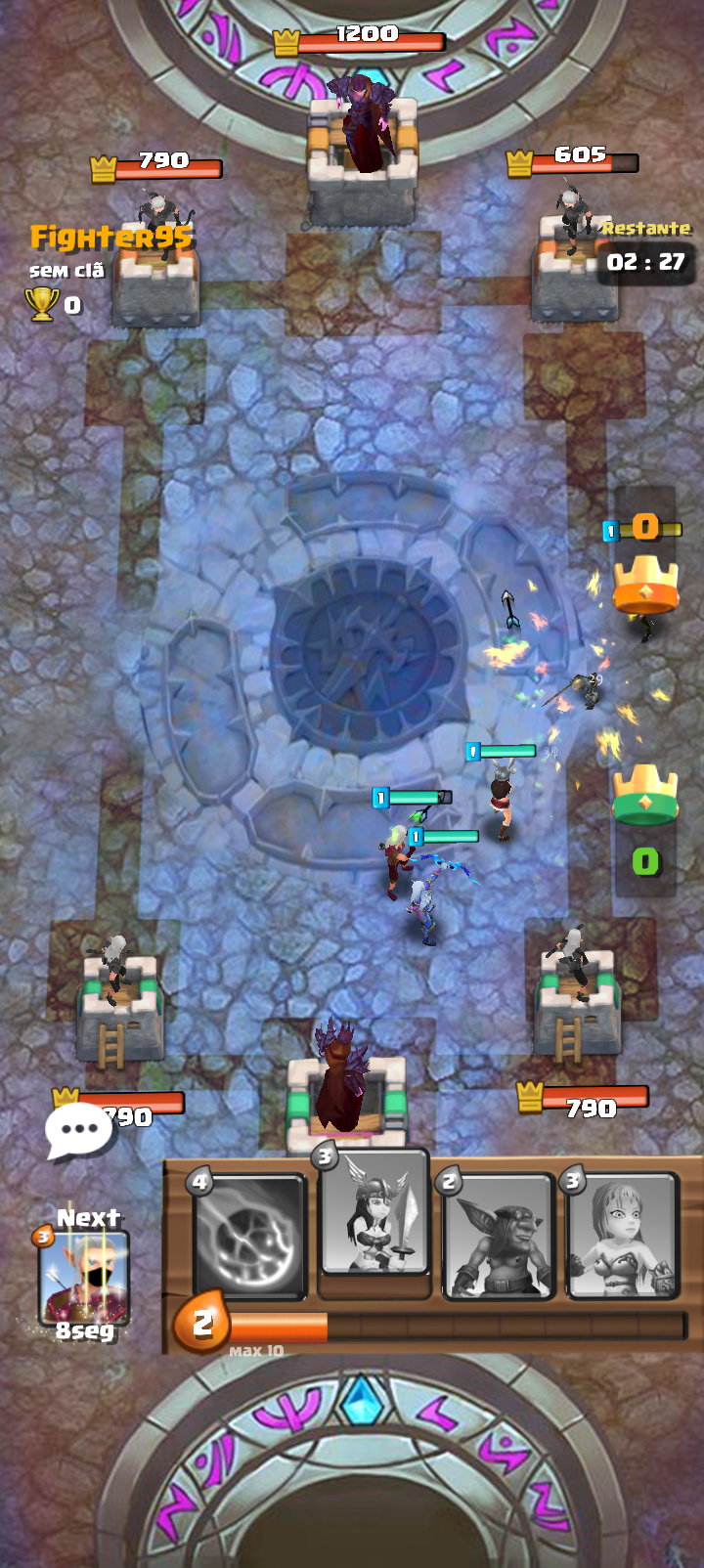 ● Earn Rewards: Open chests, collect gems and gold, and unlock rare cards to expand your collection.