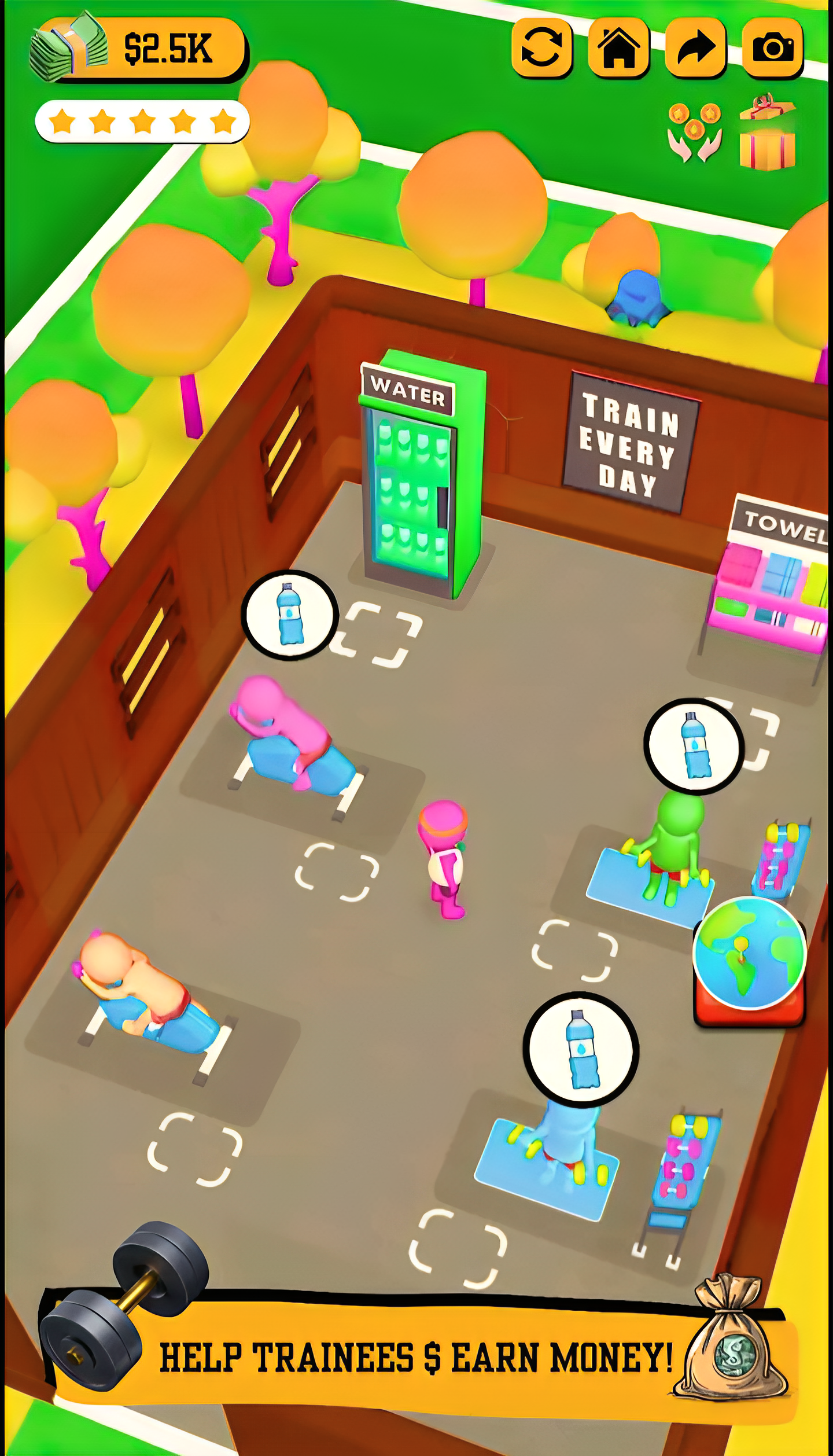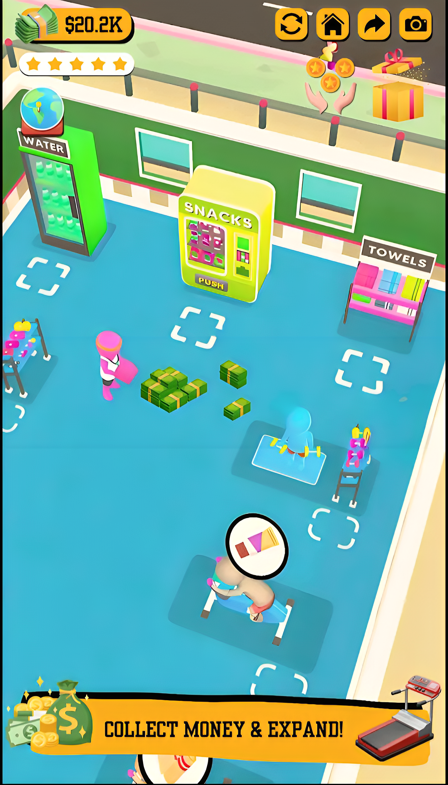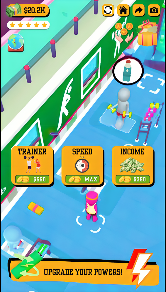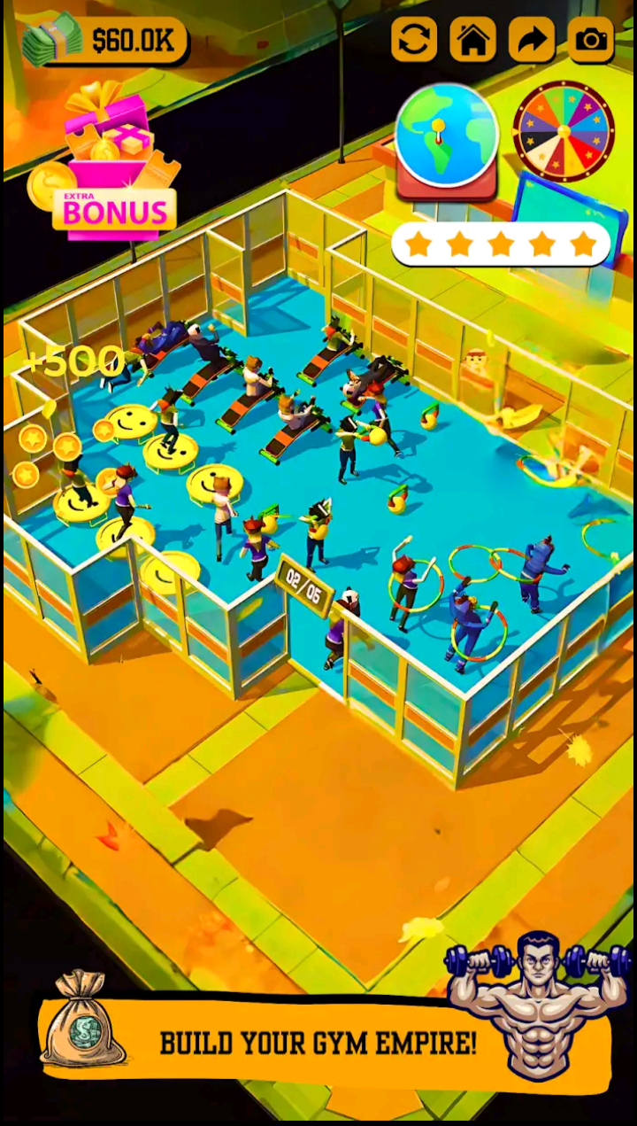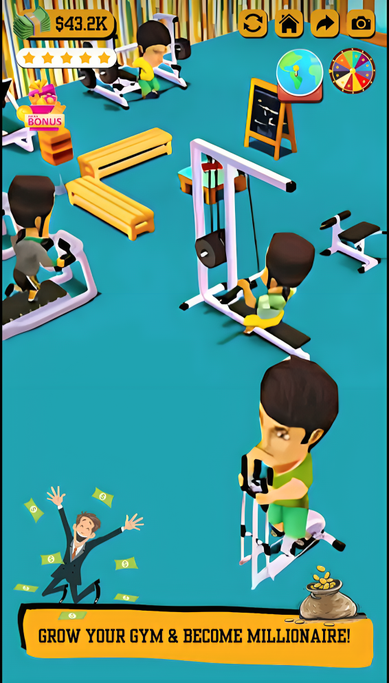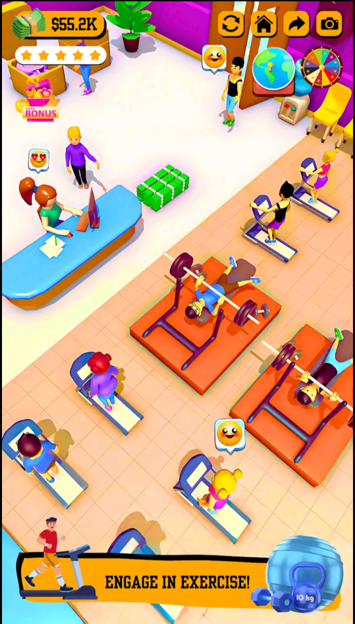 Upgrade your facilities to make your customers happy. Their feedback will help you grow! Take different growth strategies to run the best gym in the world! Renovate your gym, hire famous athletes to give prestige to your business, or attract famous people to workout in your fitness center. Invest your money strategically!