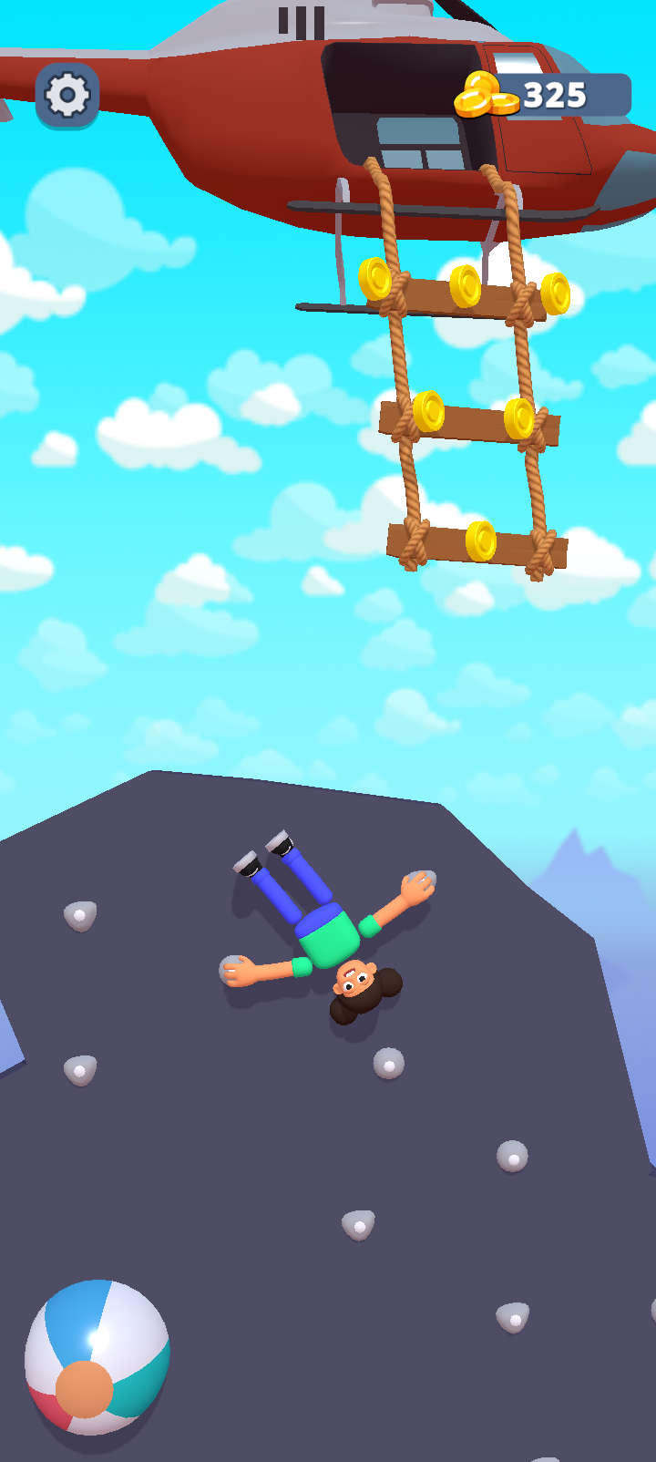 In this game, you control a quirky character wearing a cute animal hoodie, clinging to rocky walls and swinging from grip to grip. Your goal is to reach the helicopter rescue while collecting coins, keys, and avoiding tricky obstacles.