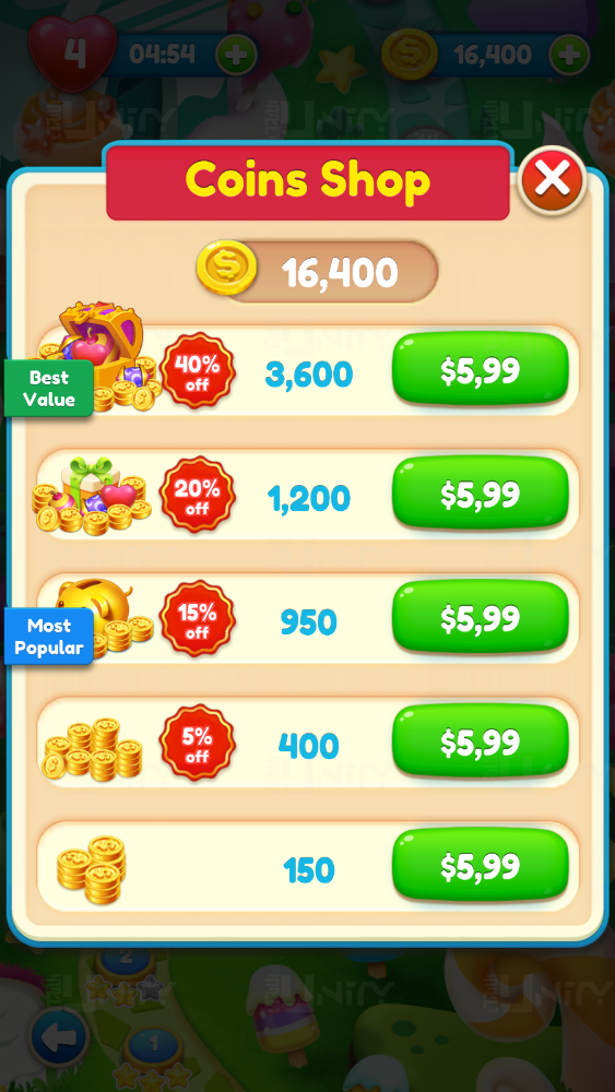 Unity IAP Systems: Players can purchase coins on the game store, RemoveAds.